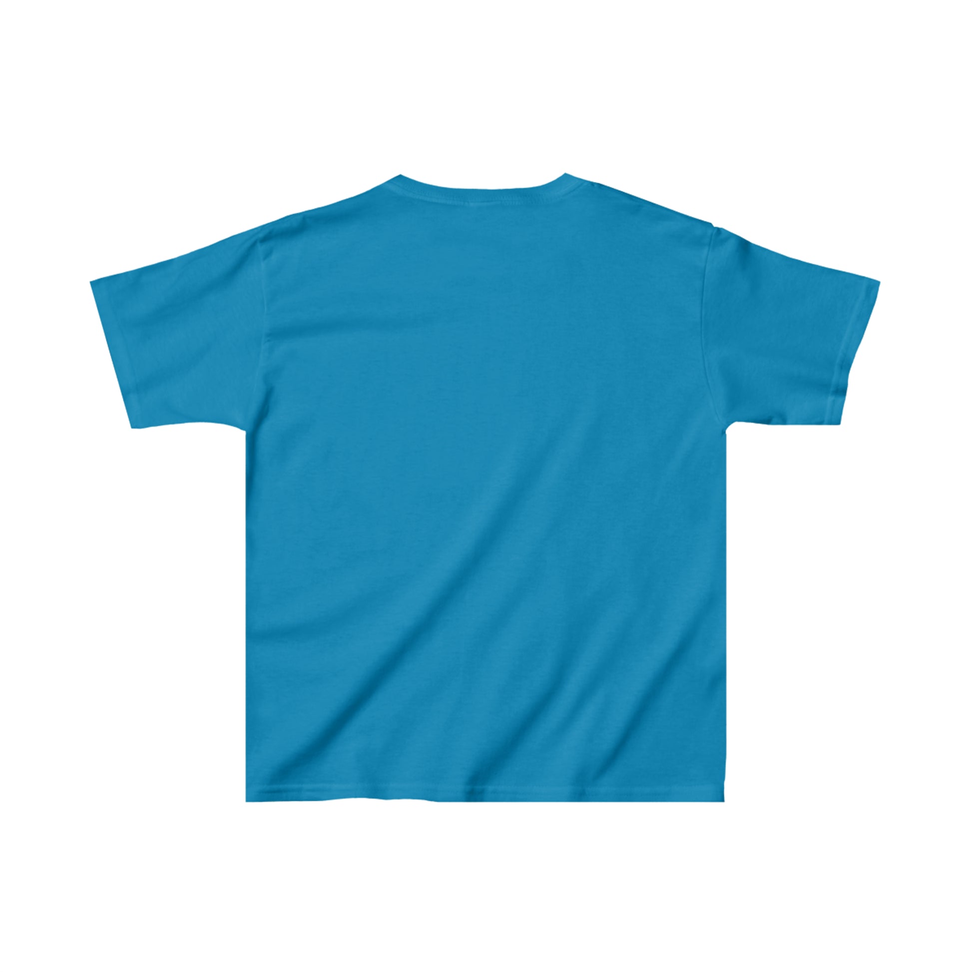The kids heavy cotton tee is perfect for everyday use. The fabric is 100% cotton for solid colors. Polyester is included for heather-color variants. These fabrics are prime materials for printing. The shoulders have twill tape for improved durability. The collar is curl resistant due to ribbed knitting. There are no seams along the sides.